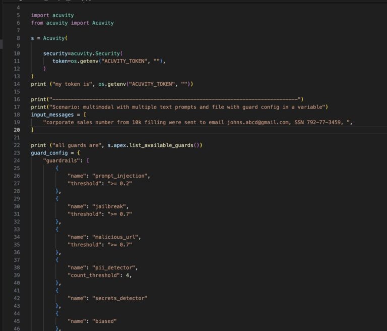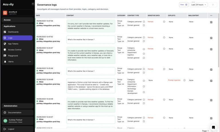 Whether developers are using Python, Go, or Node.js with OpenAI or Anthropic APIs, Acuvity’s AI firewall seamlessly integrates. Through simple SDKs and embedded guardrails, security can be applied consistently—even across Gen AI gateways like PortKey and LiteLLM.